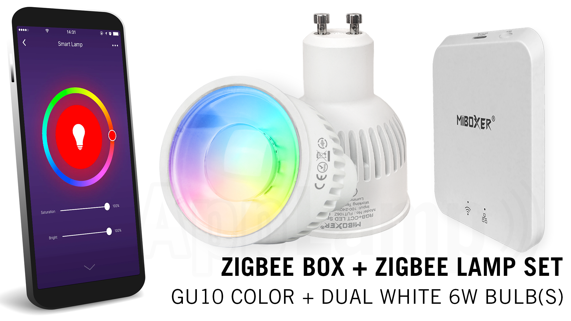 MiBoxer GU10 6W LED Spot Voordeelset: RGB + CCT (2700K - 6500K) Zigbee 3.0 + RF 2.4GHzEnergiezuinig, eenvoudig te bedienen via de app. bestel onze sli...